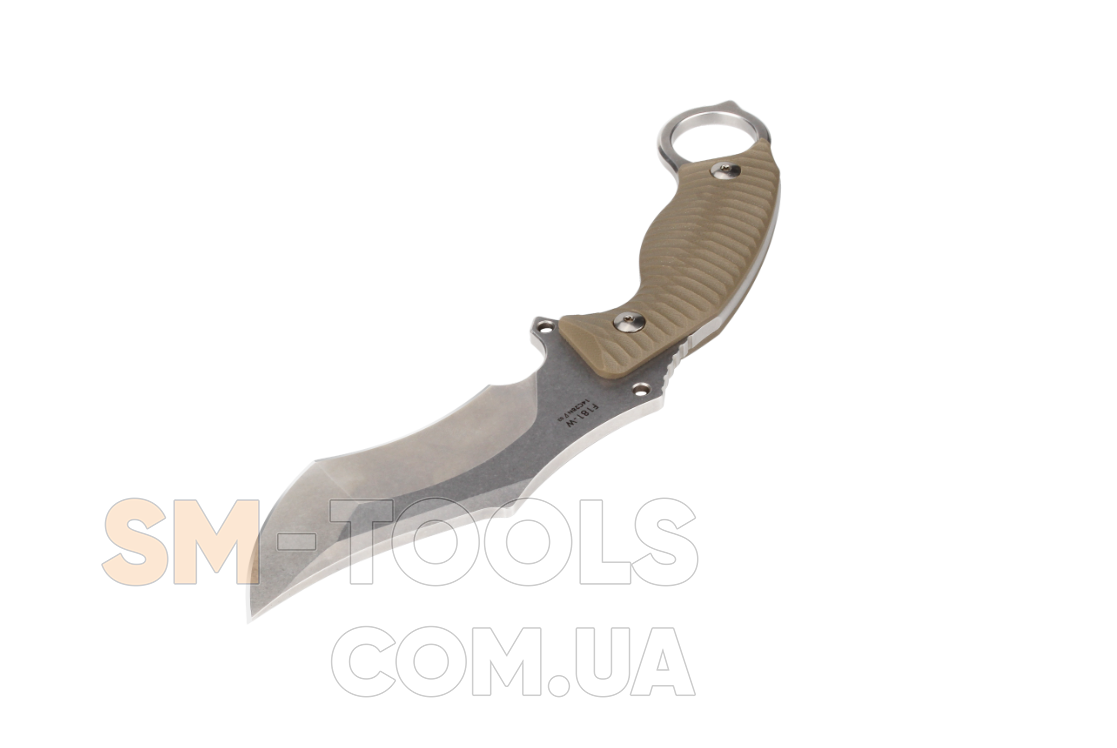 Рукоять виготовлена з склотекстоліти G10, який являє собою суміш склотканини і епоксидних смол. Це досить міцний і стійкий до пошкоджень матеріал, добре переносить вологу, відмінно піддається фарбуванню. До того ж, G10 стійкий до впливів високих температур. Рукоять з таким матеріалом у складі буде мати довгий термін служби і добре протистояти впливу різних факторів.
