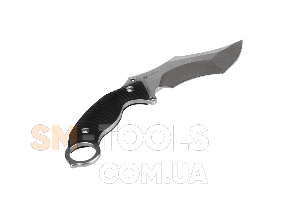 Рукоять изготовлена из стеклотекстолита G10, который представляет собой смесь стеклоткани и эпоксидных смол. Это достаточно прочный и стойкий к повреждениям материал, хорошо переносит влагу, отлично поддается покраске. К тому же G10 устойчив к воздействиям высоких температур. Рукоять с таким материалом в составе будет иметь длительный срок службы и хорошо противостоять воздействию разных факторов.