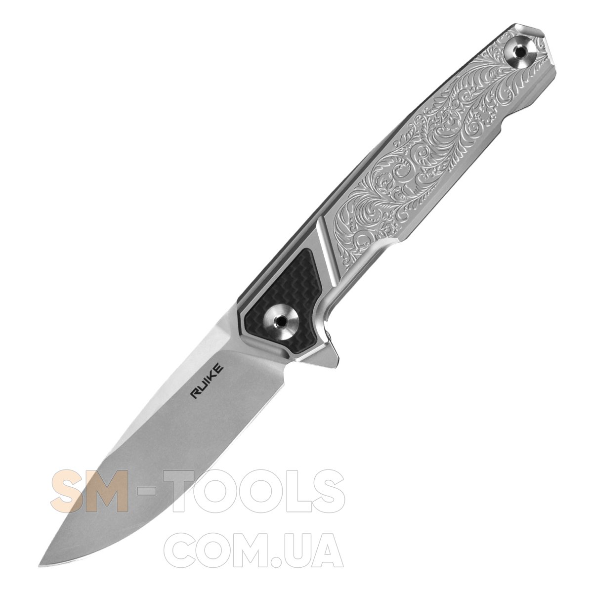 Этот нож предназначен для тех, кто в восторге от варианта Ruike M875-TZ, но при этом предпочитают лезвие из стали 14C28N и ручку из сплава 420. Эффектна складная модель, на рукояти имеется гравировка в виде орнамента с жимолостью. Жимолость по традиции считается символом добрых пожеланий. В ноже имеется защитный механизм BetaPlus, предотвращающий случайное закрытие клинка. Компактная модель пригодится туристам, путешественникам, и вполне подходит для повседневной носки. Очень удобен, легок, хорош нож.