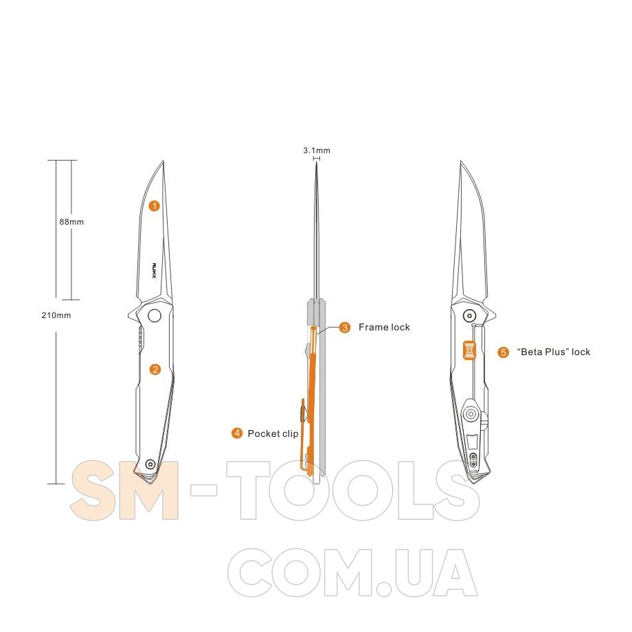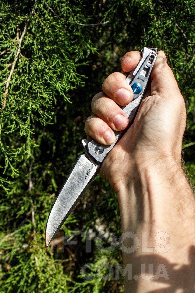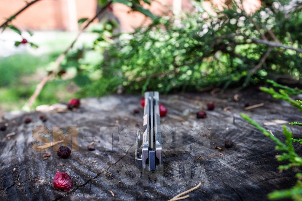 Этот нож небольшой и действительно практичный. В закрытом положении его длина составляет 12 сантиметров, а потому его удобно брать с собой в походы, на охоту или рыбалку. Но при этом он станет надежным спутником в городе, так как не займет много места в кармане. Закрывается лезвие с помощью механизма Frame Lock, который усилен дополнительным авторским замком Beta Plus, поэтому случайное открытие полностью исключено.