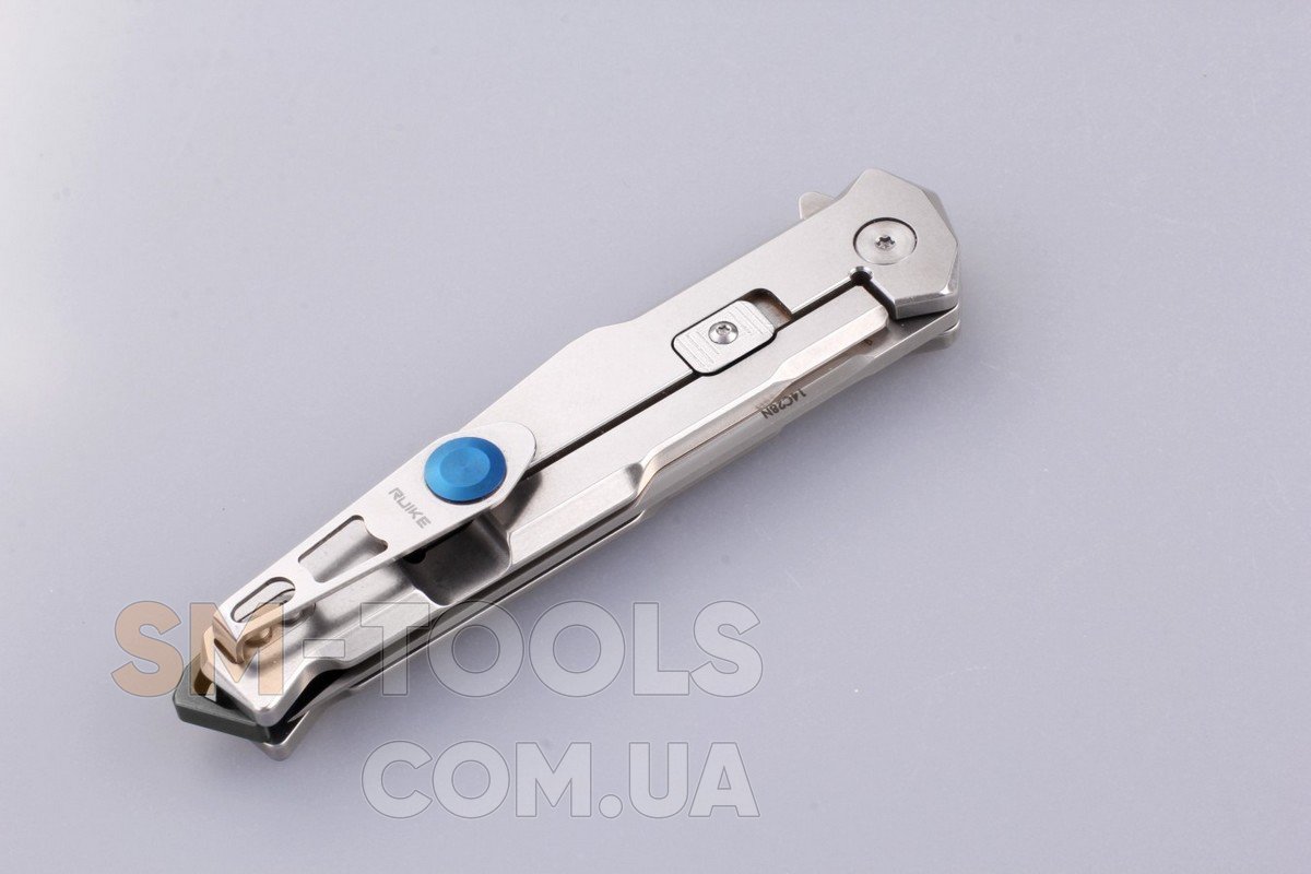 Нержавеющая сталь 3Cr14N была использована для изготовления рукоятки данной модели. В состоянии высокая прочность и повышенная стойкость к коррозионным процессам. Ручка не будет тускнеть с часом, а специальная обработка сделала этот металл максимально приятным на ощупь. Кроме того, у рукояти эргономичная и продуманная форма, а потому ее очень удобно держать в руке. Также на рукояти имеется специальная клипса, позволяющая прикрепить нож к карману, ремень или другой амуниции.