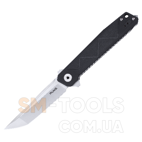 Серия Р объединения объединяет сложные приспособления. Нож P127-B представляет собой флиппер с острым клинком формы «танто», а также прямой рукояткой. Ручка ножа украшена геометрическим рисунком и имеет черный цвет. Вес изделия составляет 112 грамм. Общая длина ножа – 21,5 см, длина лезвия составляет не более 9 сантиметров. Толщина клинка – 3,1 миллиметра.