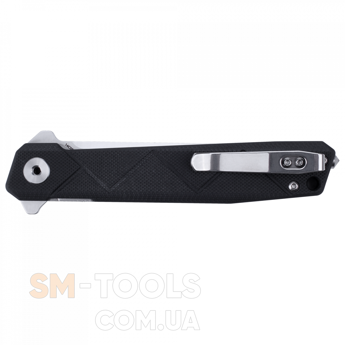 В основе лезвия – нержавеющая сталь 14C28N, закаленная до показателя 58-60 единиц Роквелла. Особенность этого материала заключается в сбалансированном химическом составе, обеспечивающем стали ее высокие эксплуатационные свойства. Хромированная сталь 14C28N используется в производстве профессиональной ножевой продукции, поскольку придает изделиям прочность, остроту и устойчивость к ржавчине. Ручка ножа изготовлена с применением стеклотекстолита G10. Это высокопрочный, стойкий к механическим воздействиям и высокой температуре, материал. Также он хорошо поддается покраске. При наличии G10 нож находит такие качества как защищенность от потертостей и царапин, а также способность выдерживать механические нагрузки. При создании рукояти ножа также использовали сталь марки 420. Она достаточно распространена, устойчива к коррозии, хотя при этом относительно мягкая.