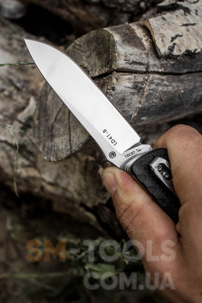 Все инструменты, в том числе и основной широкий клинок, производятся из стали 12С27 шведского производства. У этого металла высокая прочность, так что можно налегать на Ruike LD41 без опаски его погнуть. Коррозиестойкость у него тоже достаточно высока, так что даже после нахождения в условиях высокой влажности, ржавчина не появляется. Выполнять заточку и полировку достаточно просто, так как твердость стали достигает 59 HRC. Также режущие кромки долгое время не тупятся и остаются острыми.