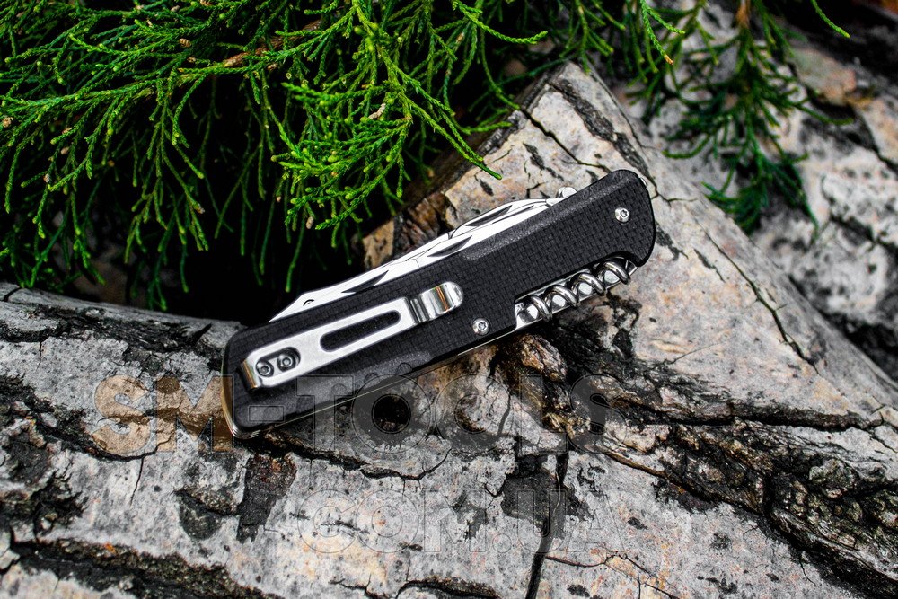 Рукоятка тоже качественная и очень надежная, потому что выполнены из композита G10. Этот материал не подвержен ни одному виду коррозии, не изменяет свойств при температуре от -50 до +140 градусов по Цельсию. Его поверхность текстурирована, а потому сцепление с рукой просто замечательное. На ручке также размещается удобная клипса для переноски ножа.