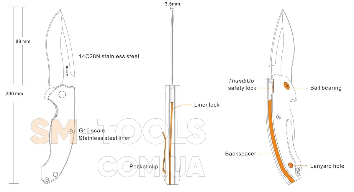 Приведение ножа Ruike P852-B в рабочее состояние осуществляется с помощью специального пловца и встроенной системы подшипников. А вот блокировка клинка в открытом виде производится замком Liner-lock. Одной из особенностей этого ножа является наличие запатентованного механизма ThumbUp safety lock, позволяющего дополнительно «подпереть» основной замок, из-за чего клинок ножа гарантированно не сложится даже если вы случайно заденете пластину Liner-lock.
