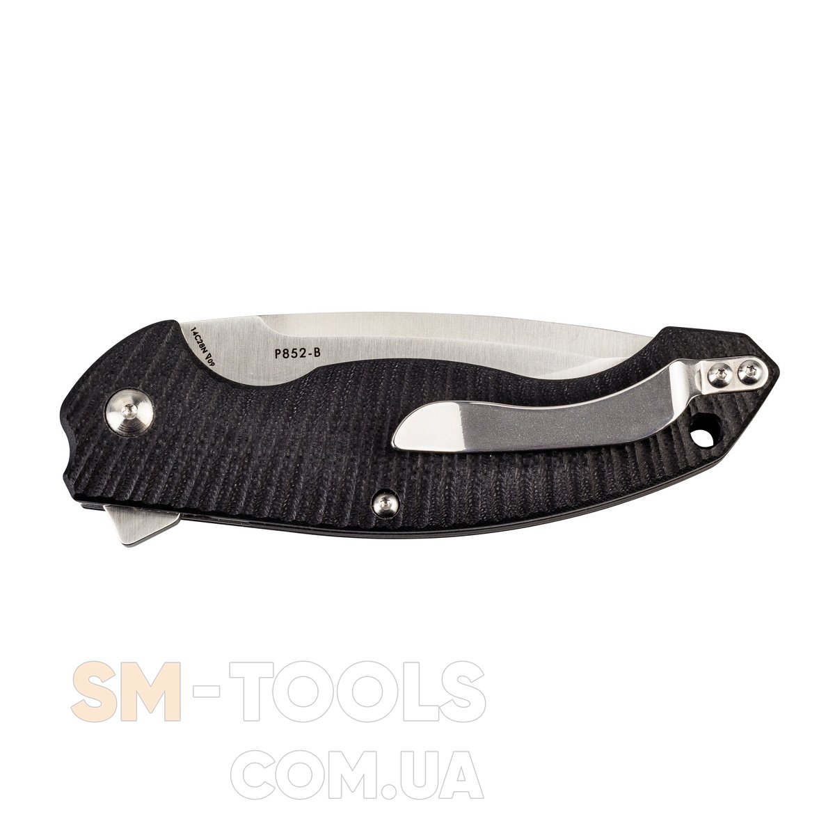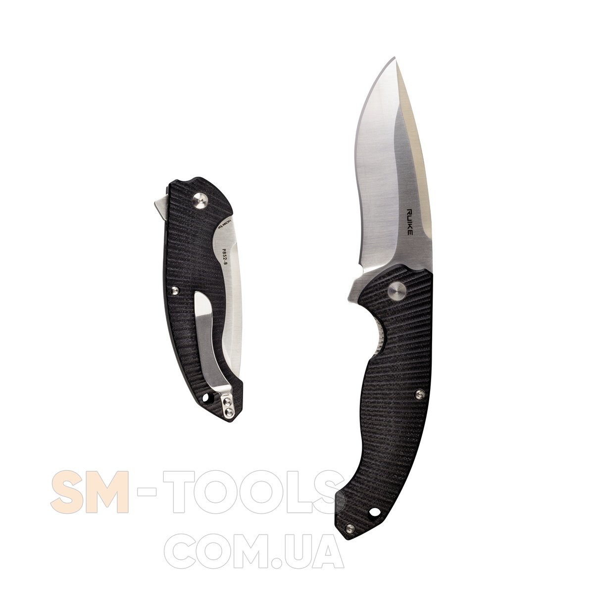 В основе рукояти Ruike P852-B лежит пара стальных лайнеров из нержавеющей стали марки 420. На них в свою очередь установлены накладки из G10 черного цвета с фактурной поверхностью. Подобное сочетание материалов, а также отличная сборка делают рукоять ножа предельно крепкой и устойчивой к нагрузкам.