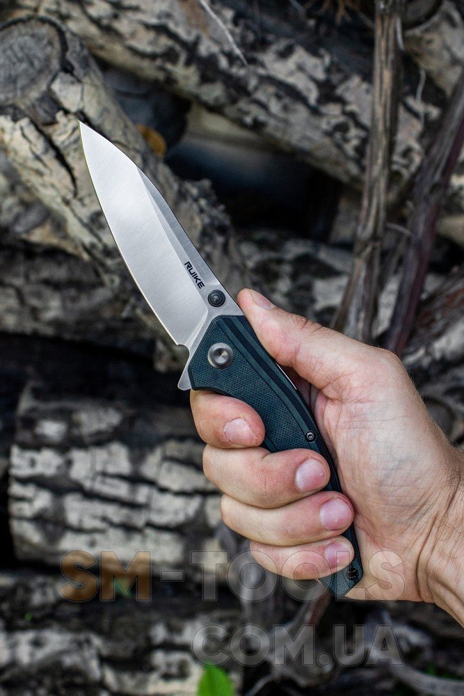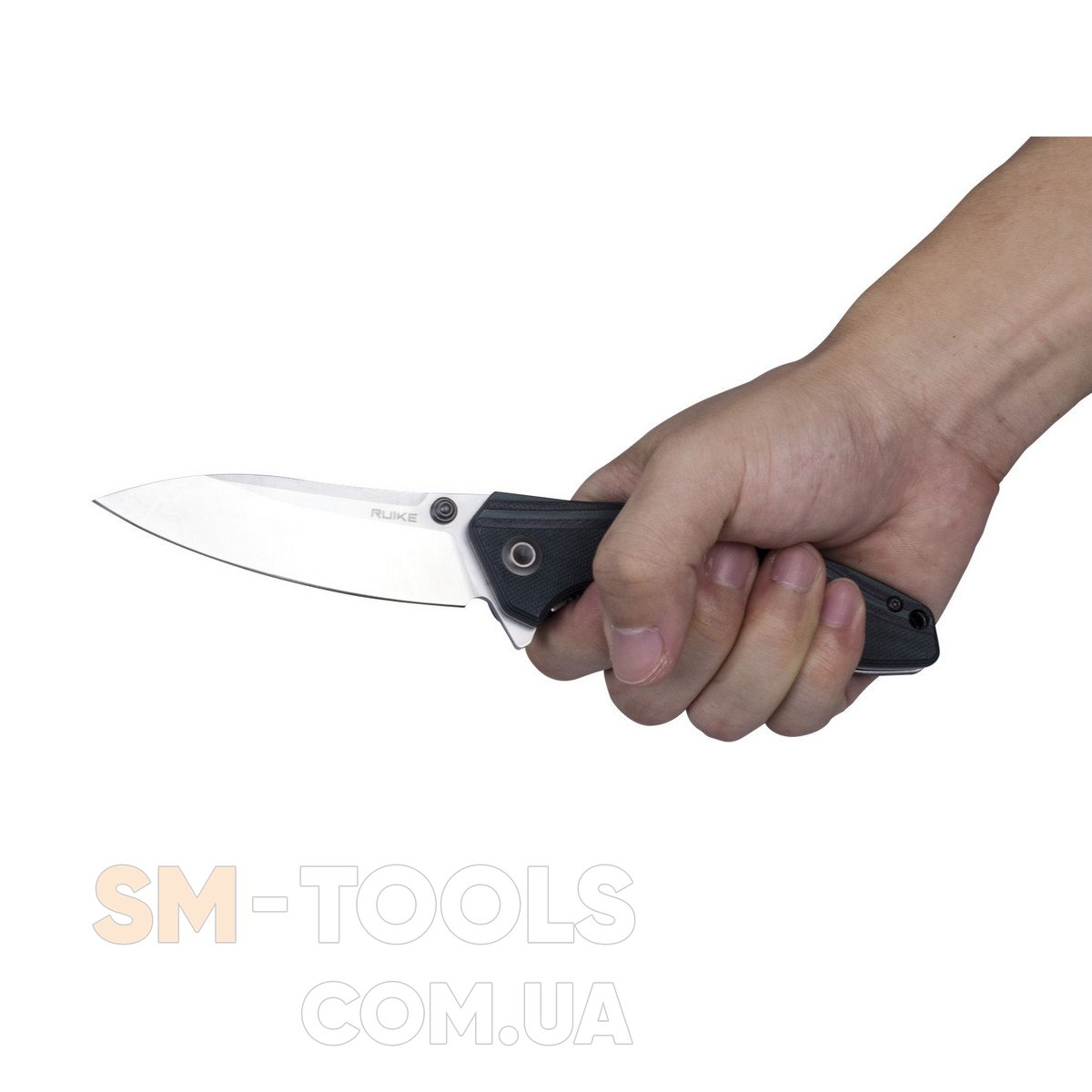 Ruike P841-L відповідає абсолютно всім сучасним вимогам, які пред'являються до багатоцільовим складним ножам. Він має просту і надійну конструкцію, міцний, зносостійкий клинок, зручну ручку і лаконічний дизайн. Дана модель може відкриватися за допомогою двостороннього шпенька або спеціального «плавця». Така компонування робить ніж максимально зручним в управлінні як для правшів, так і шульг. А завдяки наявності спеціальних кулькових підшипників ніж P841-L відкривається справді плавно і швидко.