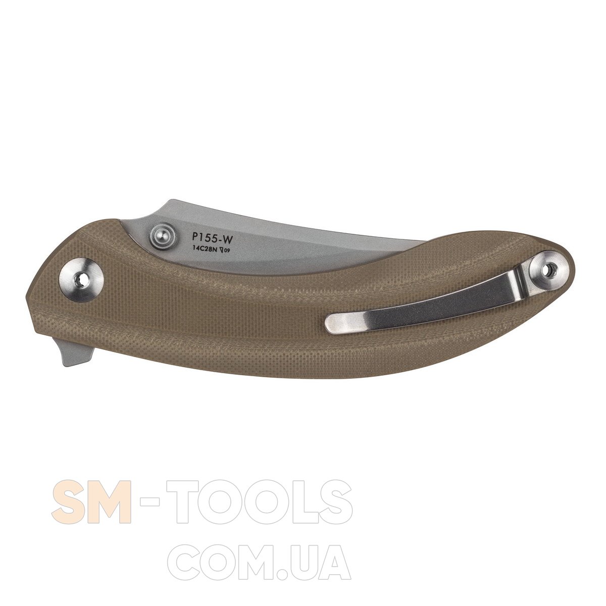- лезвие модели P155 выполнено в форме Clip-point и имеет гладкую заточку;