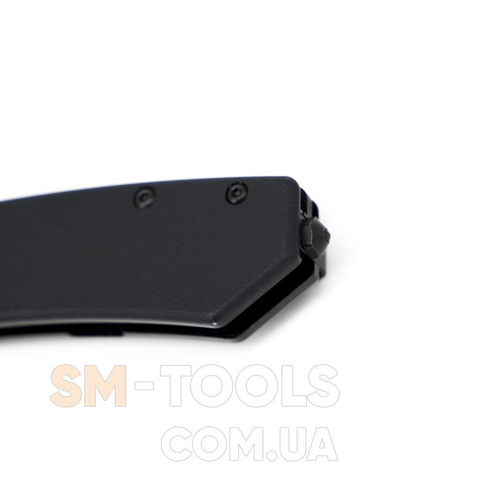 Ручка виробу виконана з сучасного, міцного і зносостійкого матеріалу G10. Це склотекстоліт, добре піддається фарбуванню. Він без проблем витримує дію високих температур, до того ж, стійкий до механічних впливів. Шорстка рукоять володіє спеціальною виїмкою, що робить її зручною для захоплення. Ніж щільно лягає в долоню, не зміщується і не вислизає під час експлуатації.