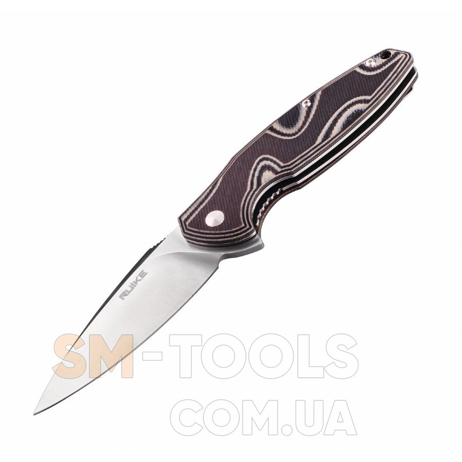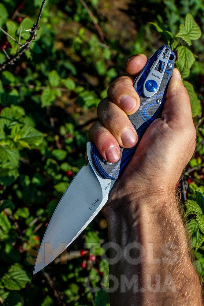 Лезвие ножа Ruike P105 выполняется из современной стали 14C28N Sandvik шведского производства. У нее уникальный химический состав с большим содержанием углерода и хрома. Данная сталь разрабатывалась специально для применения в клинках. У нее высокая жесткость (58-60 HRC) и отличная устойчивость к любым видам коррозии. Кроме того, режущая кромка сохраняет остроту очень долгое время. Нож удерживает в закрытом и открытом положении фиксатор Liner Lock, который будет выполнять свои функции даже в грязи и воде.