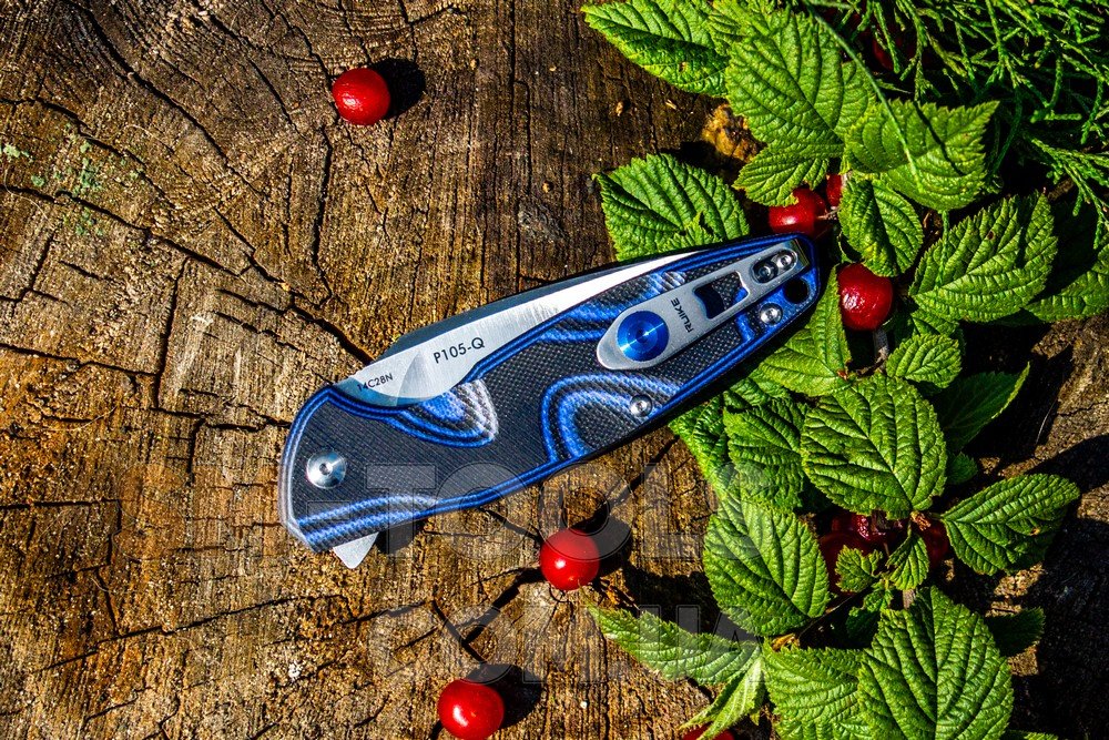 Данный нож идеально подойдет для туристов, рыбаков, охотников и людей, просто любящих проводить время на природе. Но стильный дизайн и компактность (12 сантиметров в закрытом состоянии) позволяет применять его и в качестве EDC-ножа в городе. Клиентам предлагается на выбор два варианта окраски рукояти: черная с синими узорами и коричневая с бежевыми узорами.