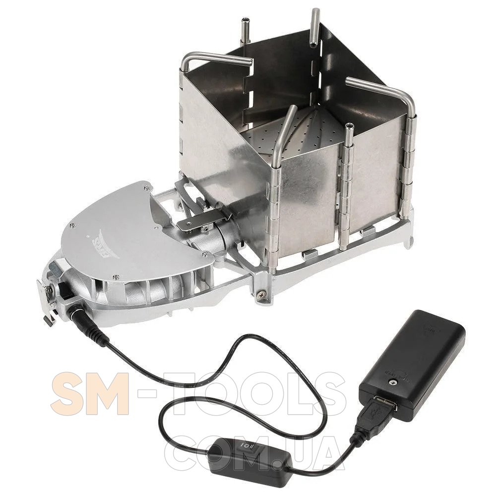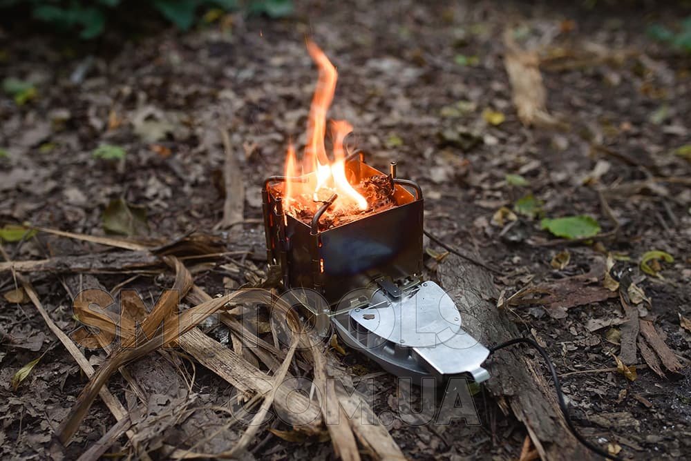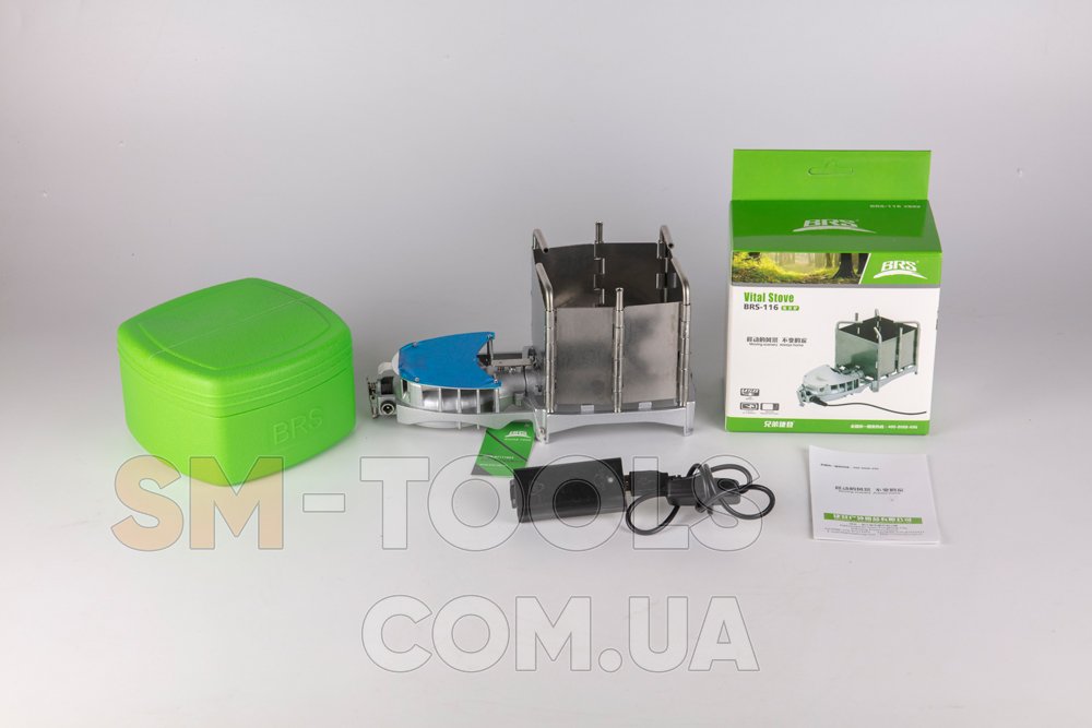 Модель горелки BRS-116 являет собой приспособление на натуральном топливе. Есть возможность принудительного наддува. Наддув работает от двух батареек типа АА или от повербанка. Вы получаете комфортный доступ для загрузки топлива, настраиваемую площадку, компактность. Кроме того, можно готовить быстро и легко. Высокая мощность – 6 тысяч ватт. На закипание одного литра воды понадобится всего-навсего от одной до трех минут времени. В качестве топлива здесь можно применять дрова, опилки, уголь, древесную стружку. Что очень практично и хорошо с точки зрения экологичности.