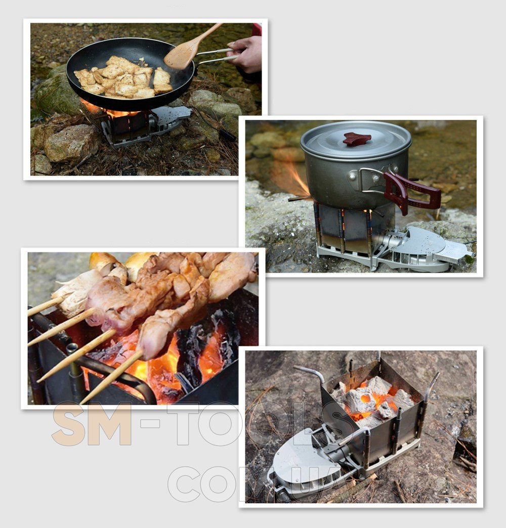 Сильное пламя, поверхность посуды при нагреве защищена вентиляционной системой, сильный и мощный огонь. Можно приготовить самые разные блюда, в том числе, годится для барбекю. Можно использовать в зимний период. Легко добыть топливо для работы горелки, что упрощает процесс готовки.