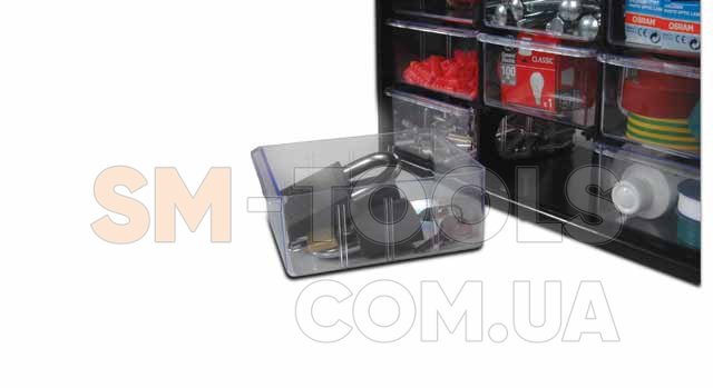 состоит из 39 прозрачных выдвижных отделений (9 больших и 30 малых)
