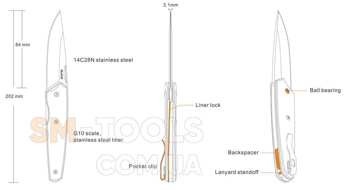 Открывается нож с помощью специальной выемки на клинку. За счет наличия подшипников, достать лезвие не составит труда даже тому, кто впервые держит Ruike P848-B в руках. Для его изготовления используется высококачественная нержавеющая сталь с маркировкой 14C28N, закаленная до уровня 58-60 HRC, что позволяет лезвию оставаться крепким в любых условиях и достаточно долго сохранять остроту режущей кромки.