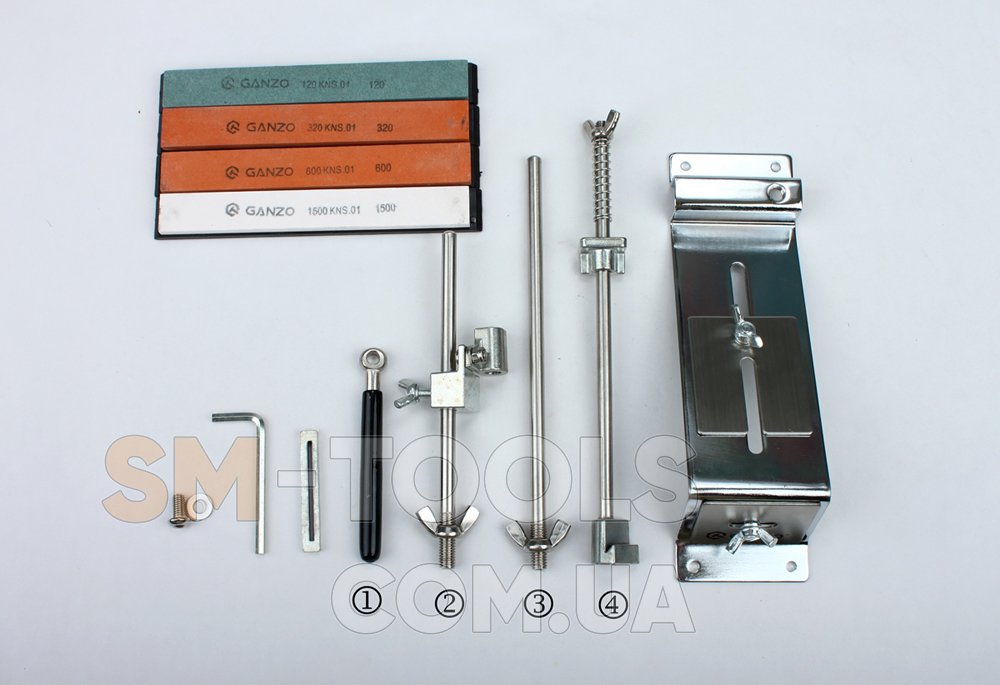 Комплектація: точильний верстат, 4 камені різної зернистості, чохол для каменів, рушник, маркер, інструкція російською мовою.