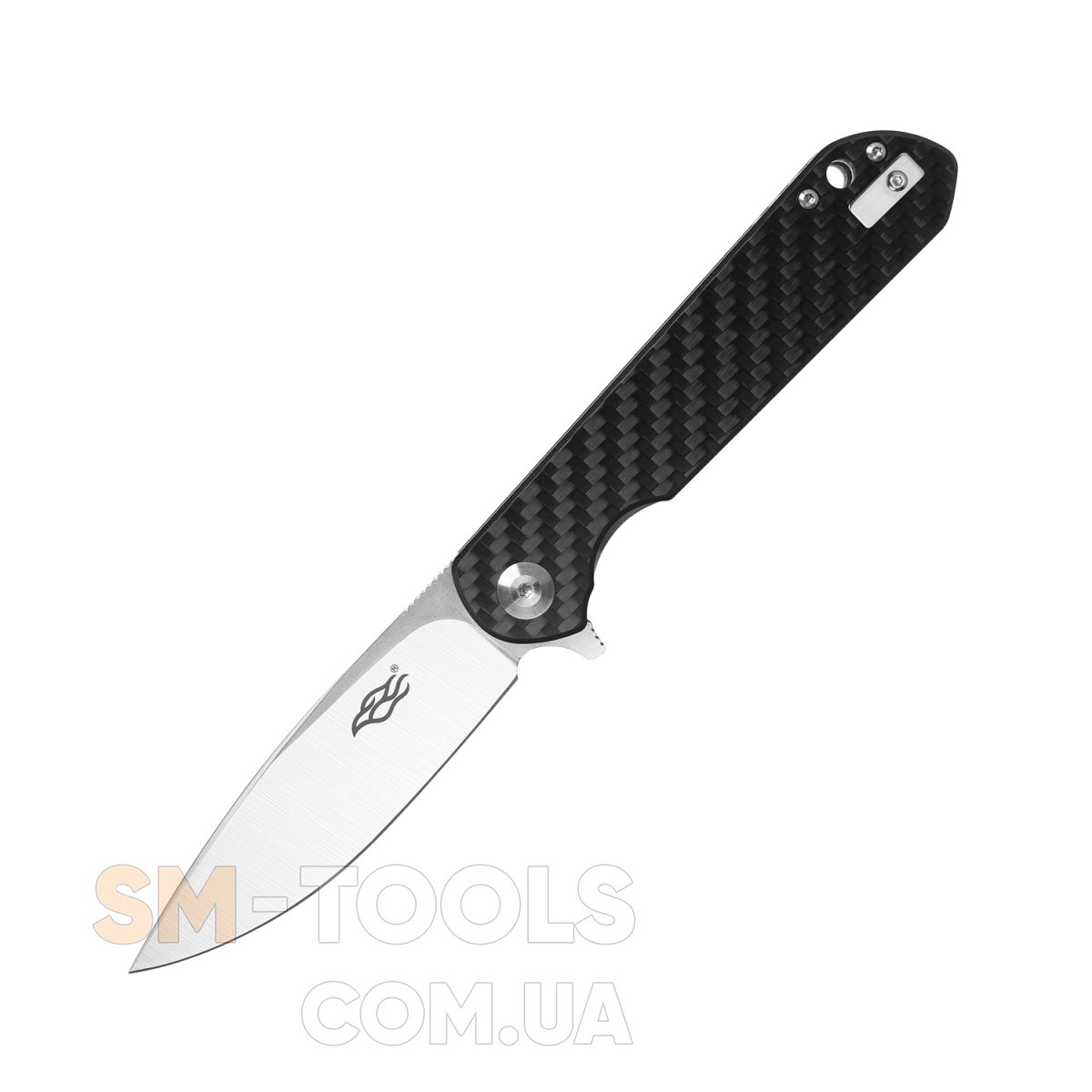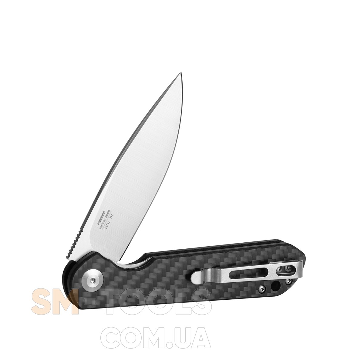 Ніж FH41-CF відразу сподобався всім, як тільки з'явився на ринку. Він універсальний і міцний, виробник продумав кожну дрібницю. Форма клинка класична – drop-point, з приспущеним до вістря обухом. Виготовляється він із високоякісної сталі D2 з твердістю 60 HRC. Фіксує клинок у закритому і відкритому положенні механізм Flipper, який показує високу надійність.