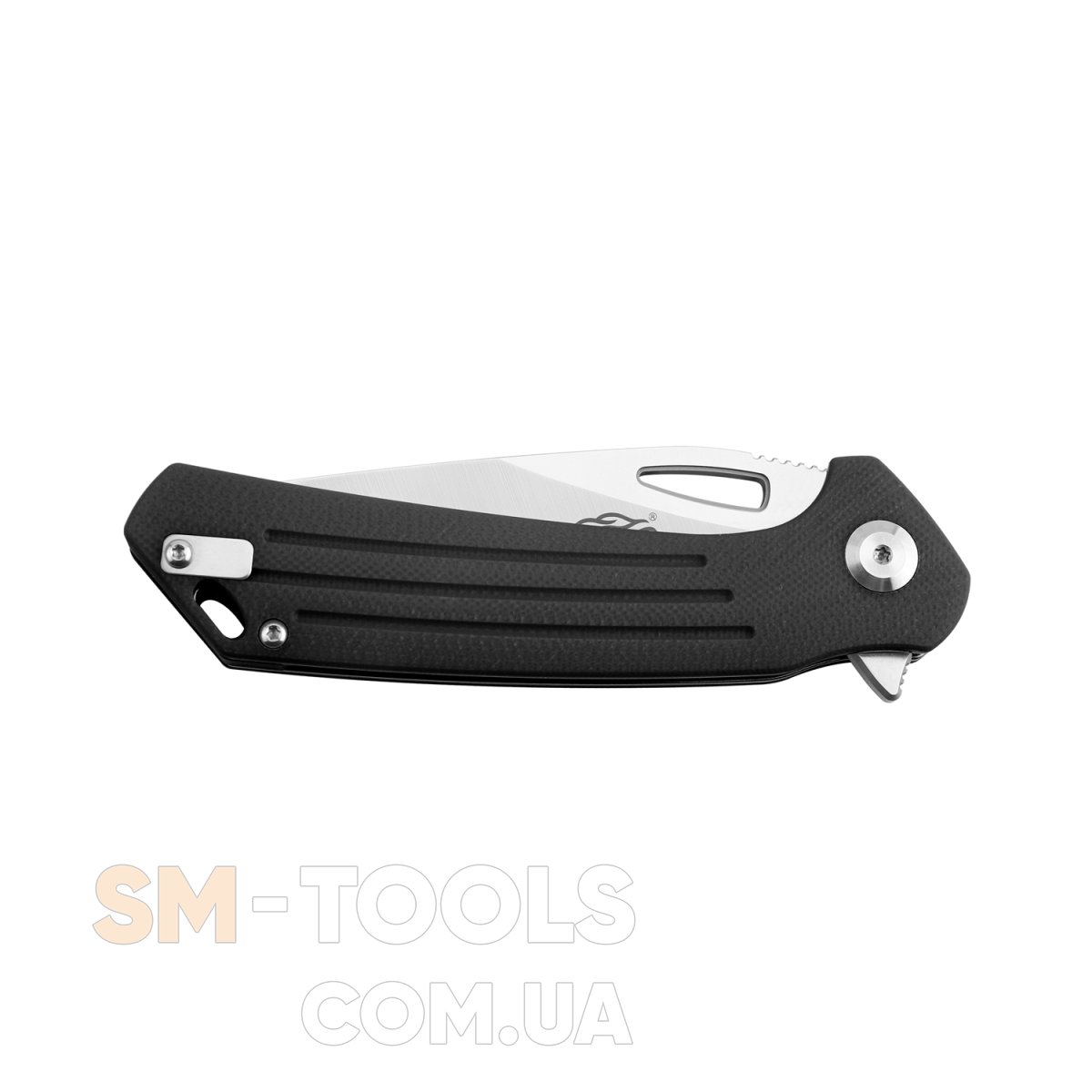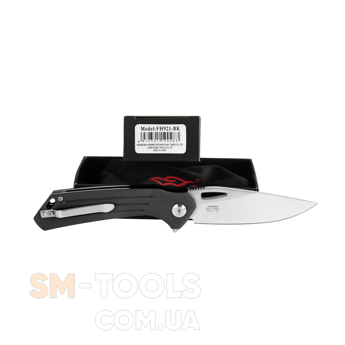 Ніж складаний Ganzo Firebird FH921 представляє собою кишенькове виріб, розраховане, в тому числі, на використання в туризмі. Особливість даної моделі – у нетиповою формою рукояті, яка має виїмку у верхній частині ближче до обуха. Насічки на обуху сприяють кращому зчепленню з пальцем користувача. Інша характерна риса – отвір в області клинка на місці, де зазвичай розташовується шпенек. Конструктивний елемент допомагає легко відкрити виріб рукою. Осьовий гвинт забезпечений круглим металевим підшипником.