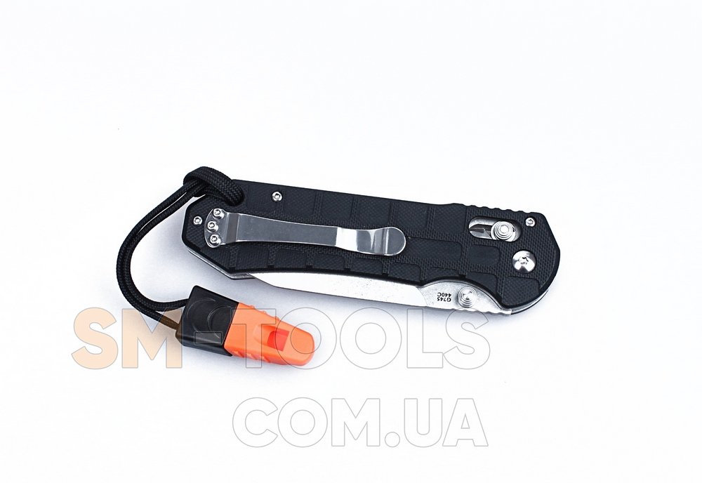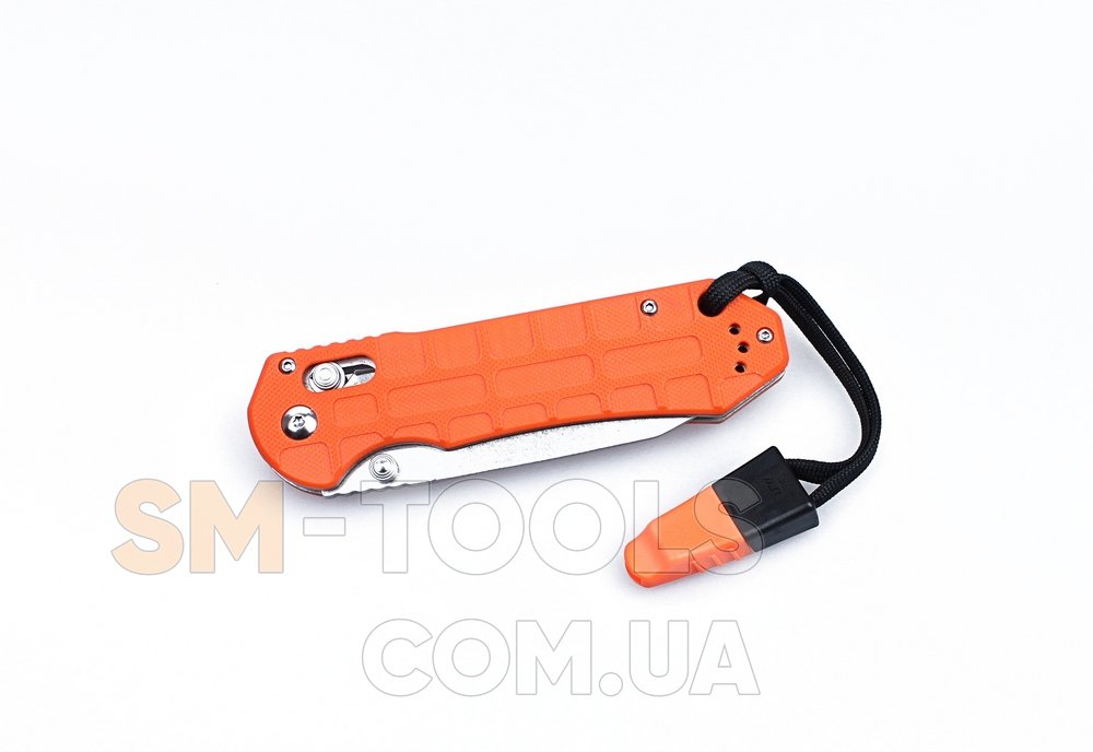 Ну а бонусом моделі Ganzo G7452P є наявність ремінця на руку, продеваемого в рукоятку, і свистка. Останній, може використовуватися для сигналів під час туману або в інших умовах поганої видимості.