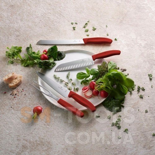Яркий красный невозможно не заметить! Он станет вашим любимым ножом, ведь это Santoku из серии Swiss Classic. Удобная рукоятка, привлекательный дизайн и, конечно, отличная острота и особенная форма Santoku – это реально фантастический нож!