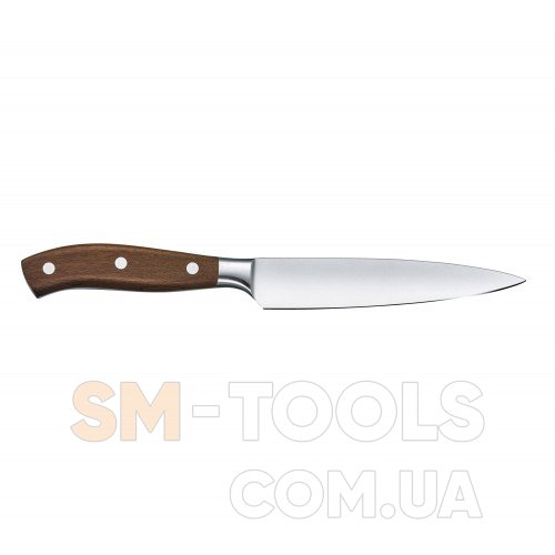 Комбинируя красивую форму с высокой функциональностью, стейковый нож Grand Maître из серии кованых ножей Victorinox имеет идеальную стейковую форму лезвия, которое равномерно закалено и отлично сбалансировано. Но не только лезвие делает этот нож прекрасным - ручка из розового дерева элегантна и износостойка. Ножевые эксперты считают палисандр одним из лучших материалов, который прекрасно зарекомендовал себя в повседневной работе. Ручная полировка и эргономичная конструкция рукояти придает дополнительное удобство при ее удержании и превосходную легкость в использовании. Это изящный нож, который легко разрезает стейки и другое мясо, а пригоден в использование как для частных домов, так и для профессиональных учреждений.