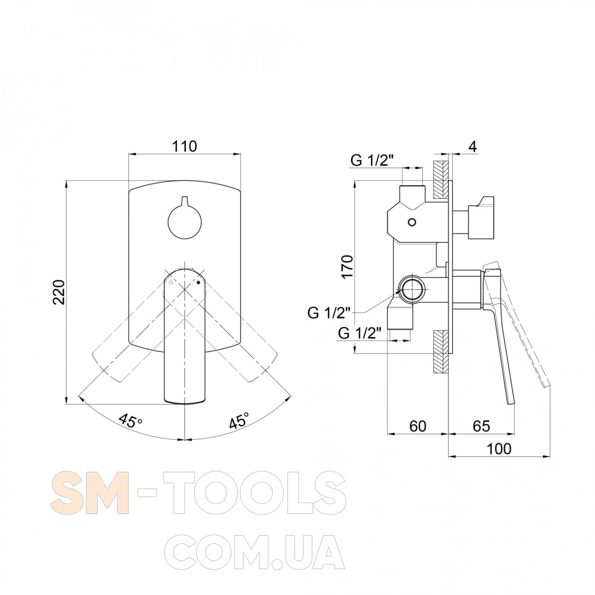 Смеситель скрытого монтажа Qtap Slavonice 6242103C на два потребителя