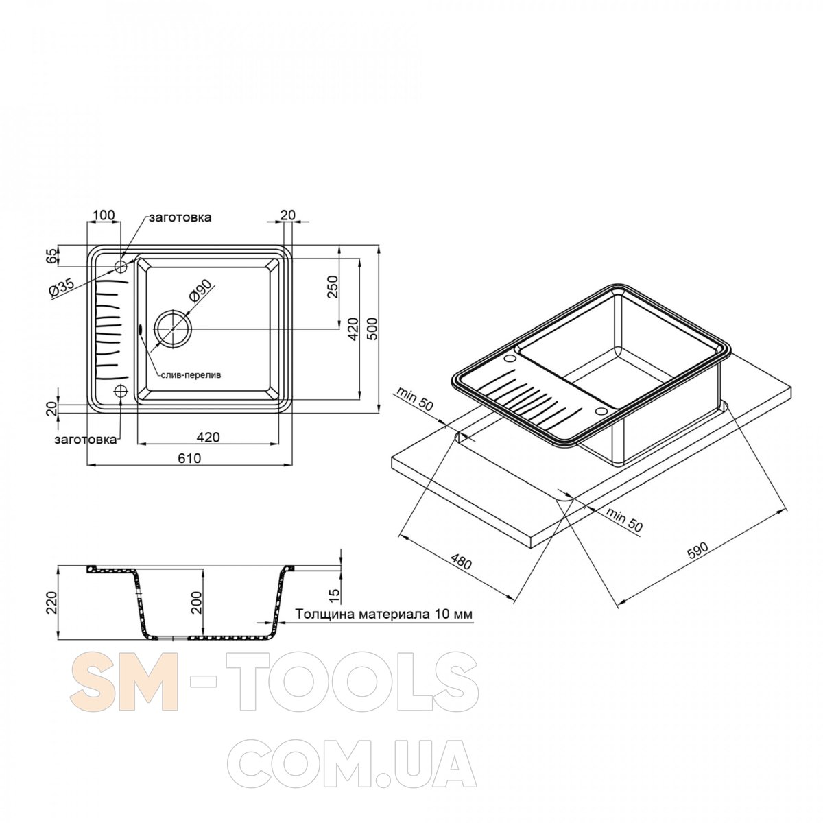 Характеристики Кухонна мийка Qtap CS 6250 Black (QT6250BLA404):