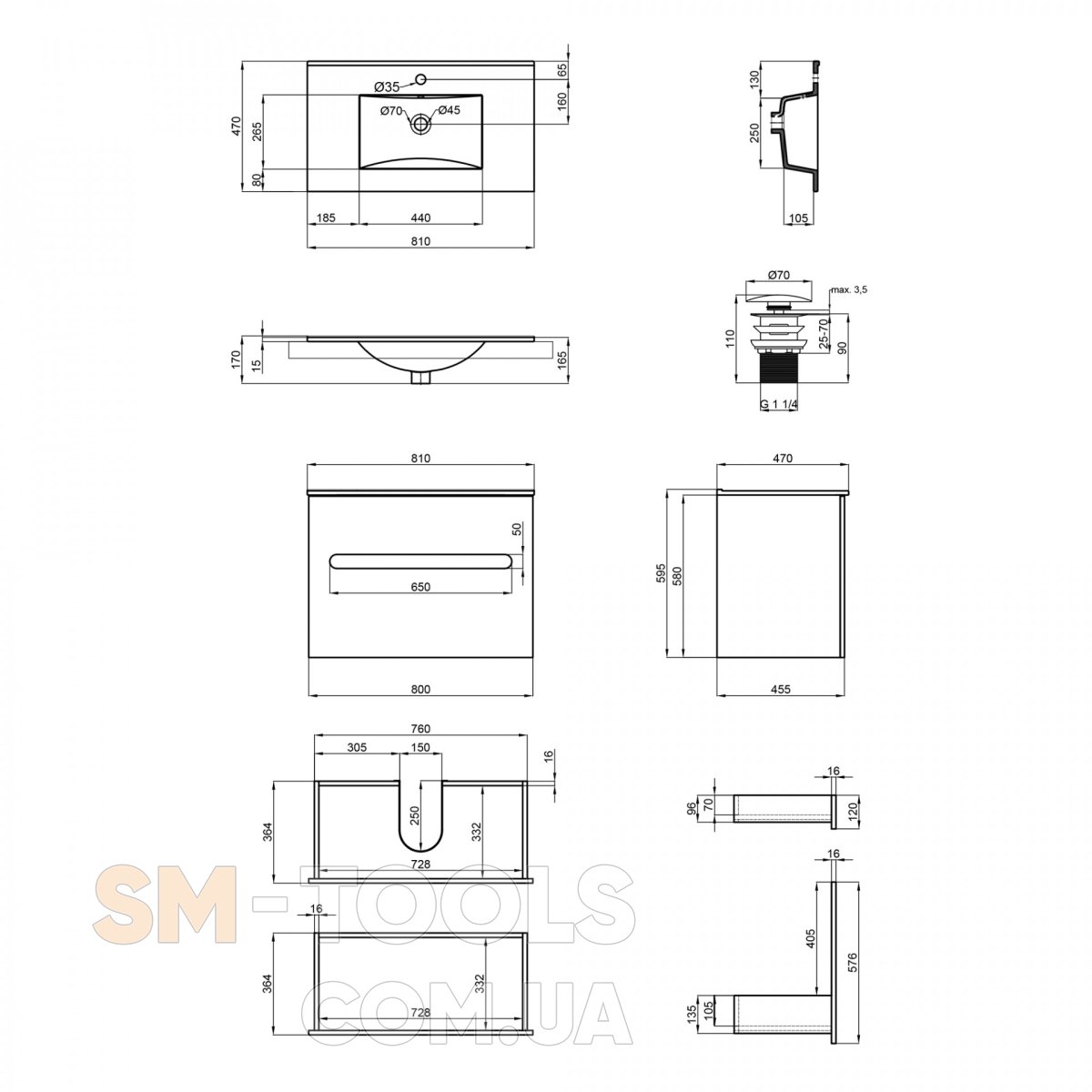 Комплектация Тумба с раковиной Qtap Virgo White/Whitish oak QT1872TPА8013080CW: