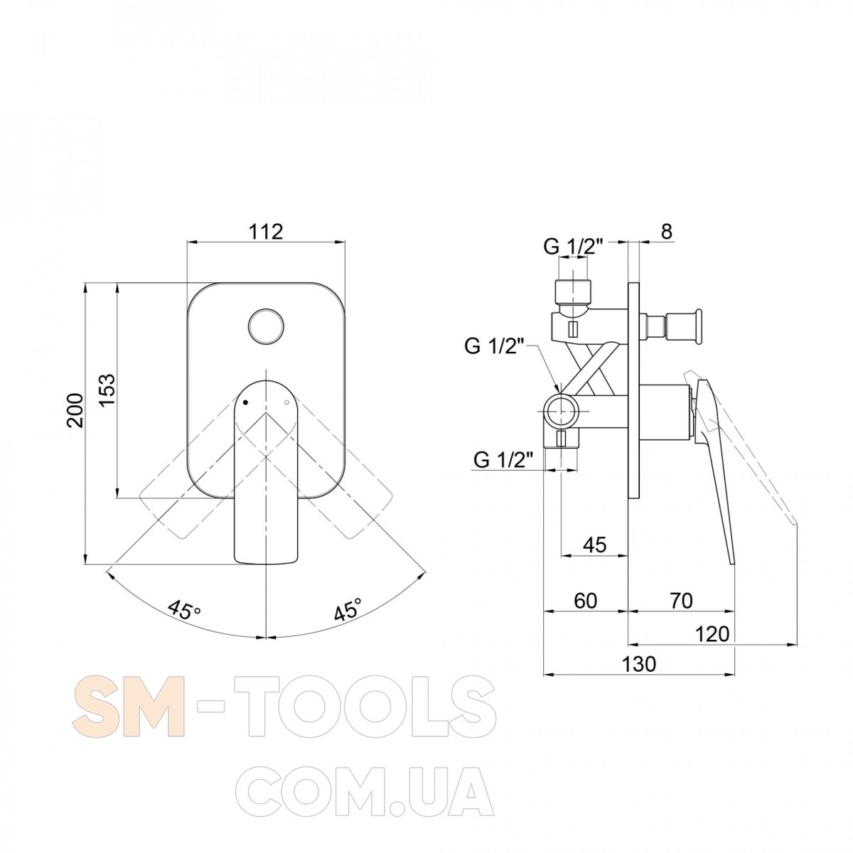 Характеристики Смеситель скрытого монтажа Qtap Vlasta 6028102NC на два потребителя: