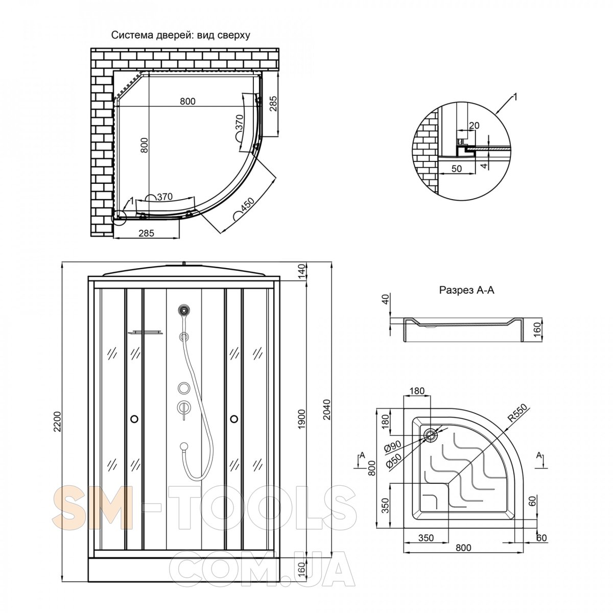 Комплектація Душовий бокс Lidz Tani SB80x80.SAT.LOW.FR, скло Frost 4 мм + піддон Kupala: