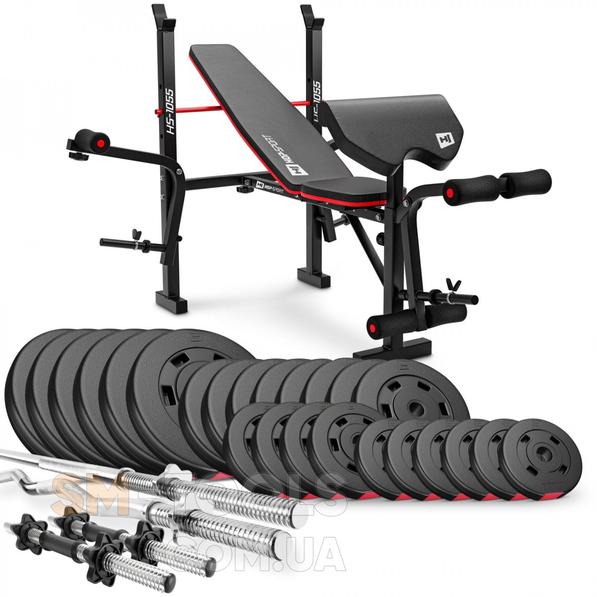 Набор Premium 135 кг со штангами и скамьей HS-1055 – идеально подобранный комплект с функциональной скамейкой и лучшим сочетанием количества и веса дисков, чтобы организовать дома полноценный спортзал для силовых тренировок.
