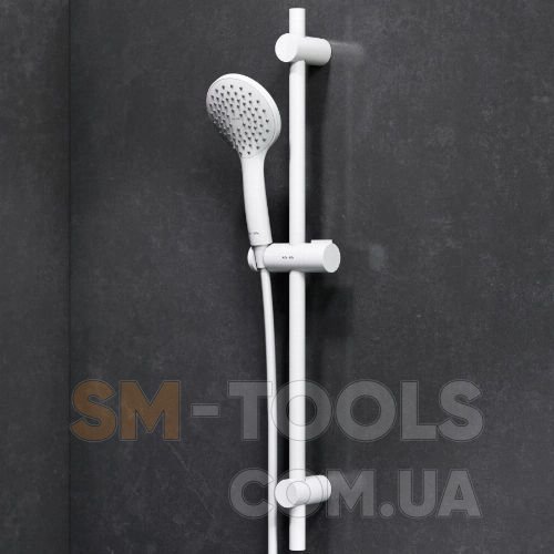 Продуманные детали для удобства использования: шарнирное соединение защищает душевой шланг от извращения, регулируемый в трех плоскостях держатель ручного душа, функция Rub&Clean для легкой очистки душевых форсунок. Один режим ручного душа.