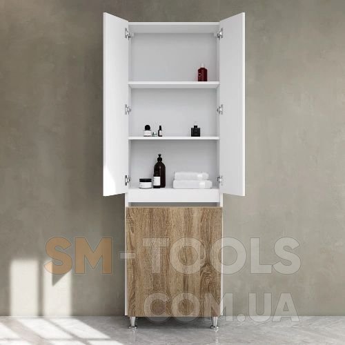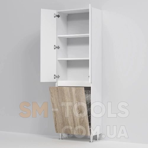 На пол, 60 см, дверь, корзина, белый глянец/дерево