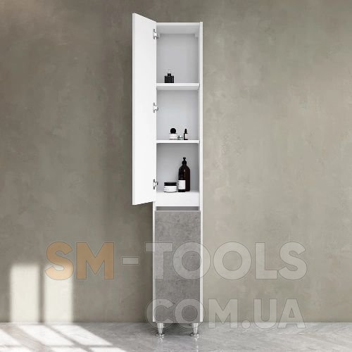 На пол, 35 см, левая, дверь, корзина, белый глянец/базальт