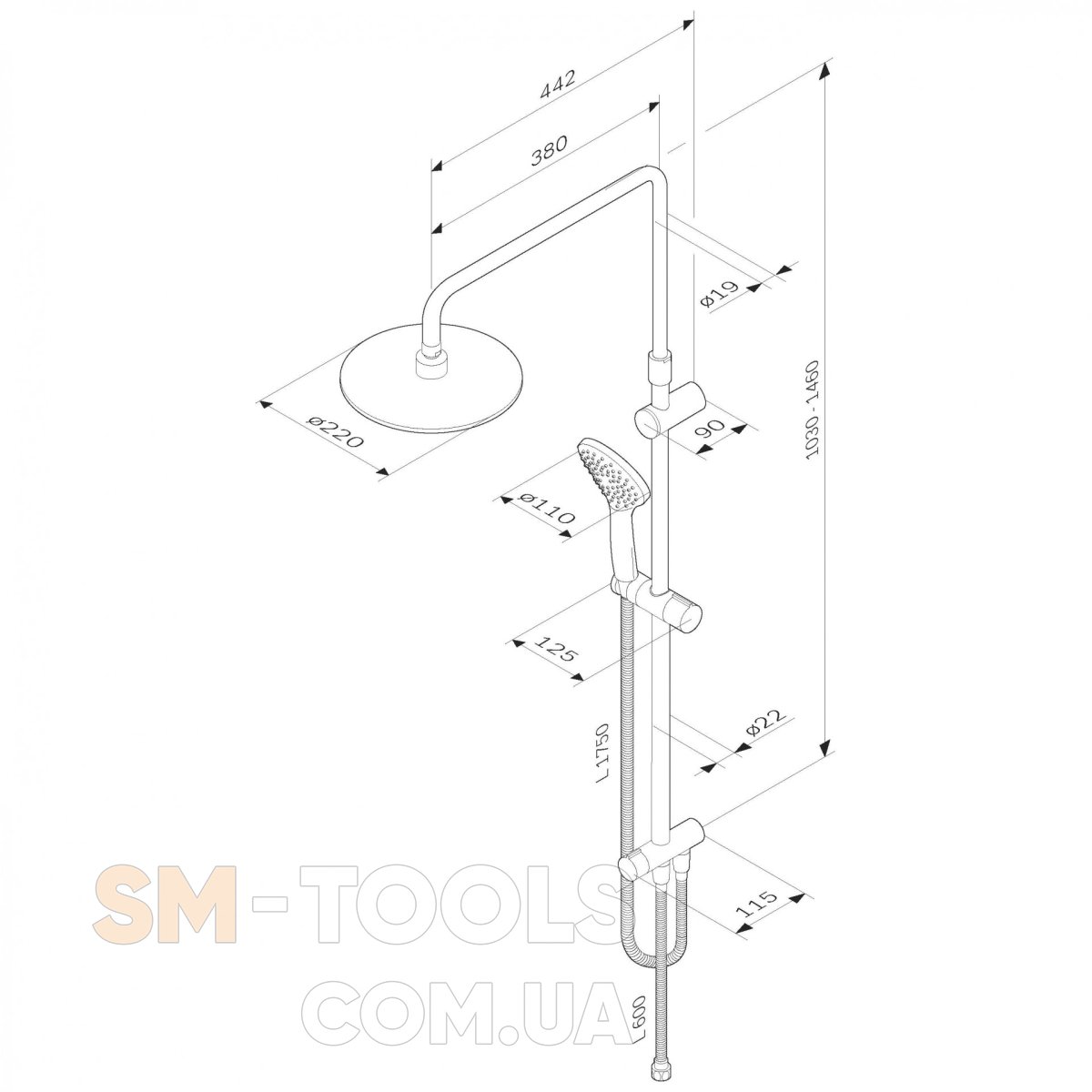 Диаметр душевых воронок (верхний душ 220 мм и ручной душ 110 мм) позволит почувствовать преимущества тропического душа даже в стандартной ванной, тогда как увеличенная длина шланга 1750 мм обеспечит свободу движений при принятии душа. Продуманные детали удобства использования: телескопическая поворотная штанга регулируется по высоте в диапазоне от 1030 до 1460 мм, обеспечивая комфорт для людей любого роста.