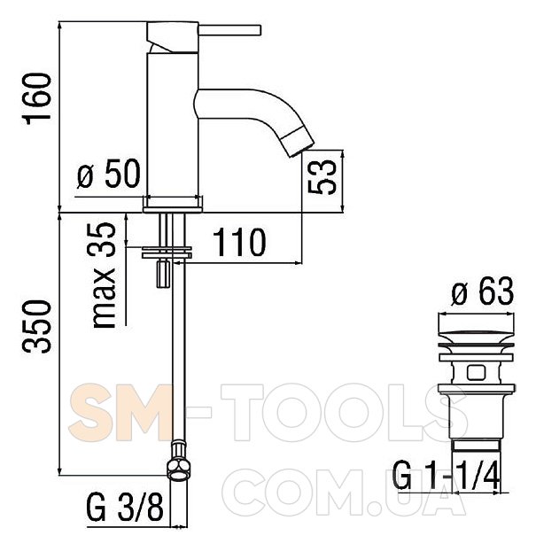 Одноважільний змішувач для умивальника LV00118/2BM з донним клапаном має чорну матову обробку, що вишукано підкреслить ванну у сучасному стилі. Аератор захищає проти вапняних відкладень. Тривалий термін служби забезпечує шланг із нержавіючої сталі ø 3/8". Крім того, змішувач обладнаний обмежувачем напору, натискним зливом ø 1 1/4".