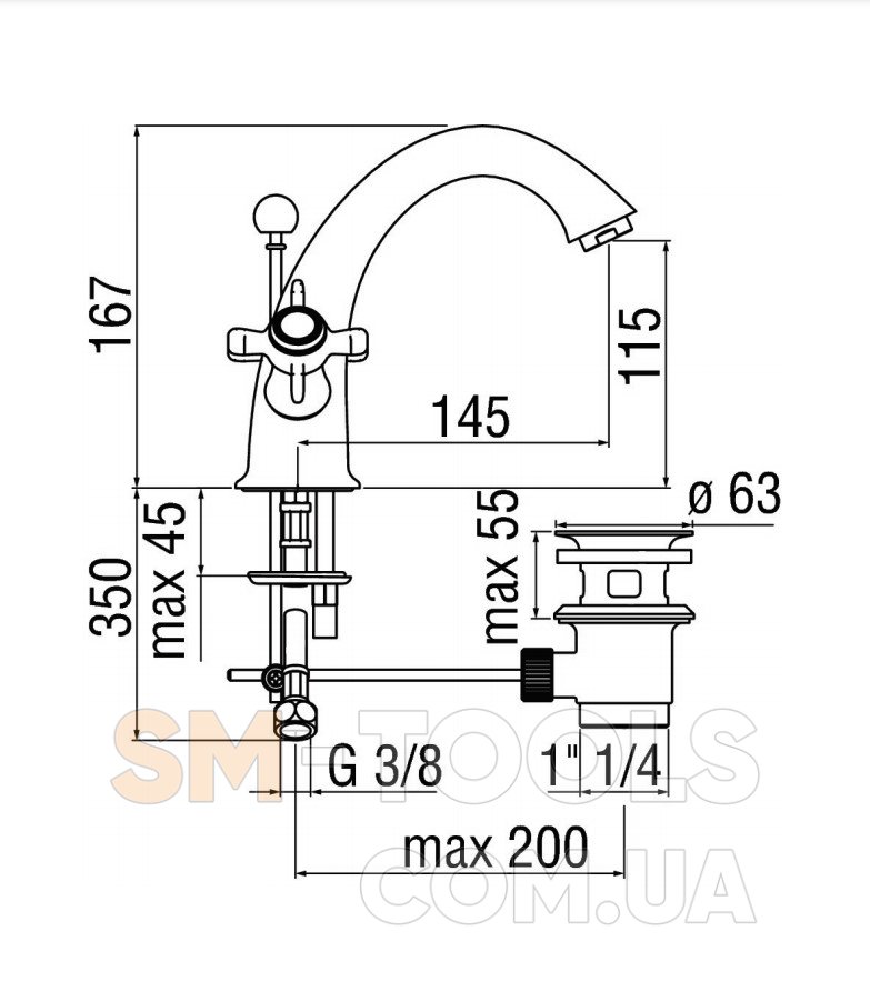 Смеситель для умывальника RI49118/6CR с хромированным покрытием оборудован аэратором против известковых отложений M 24x1, сливом ø 1 1/4" и шлангом из нержавеющей стали ø 3/8". Модель из коллекции RITZ, выполненная в стиле ретро, стильно дополнит ванную комнату, придаст ей уникальность и неповторимость.