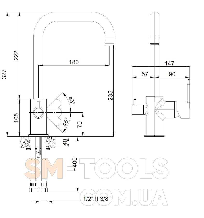 Характеристики Смеситель для кухни с подключением к фильтру Adell Lento 15494421: