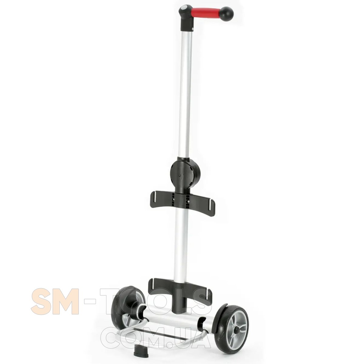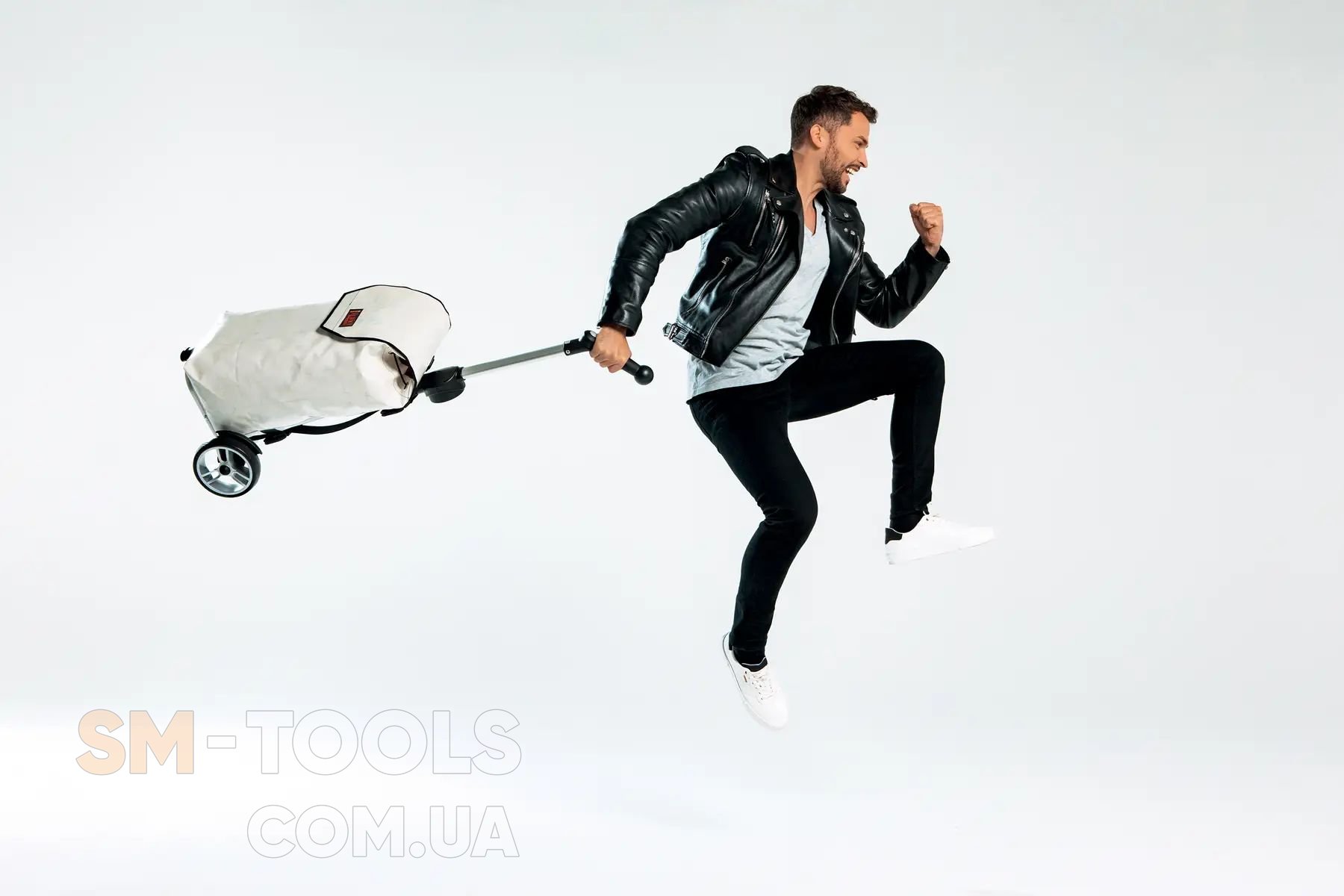 - Тележка оснащена телескопической ручкой с регулировкой, что позволяет уменьшить конструкцию и фиксировать ручку на любую высоту.