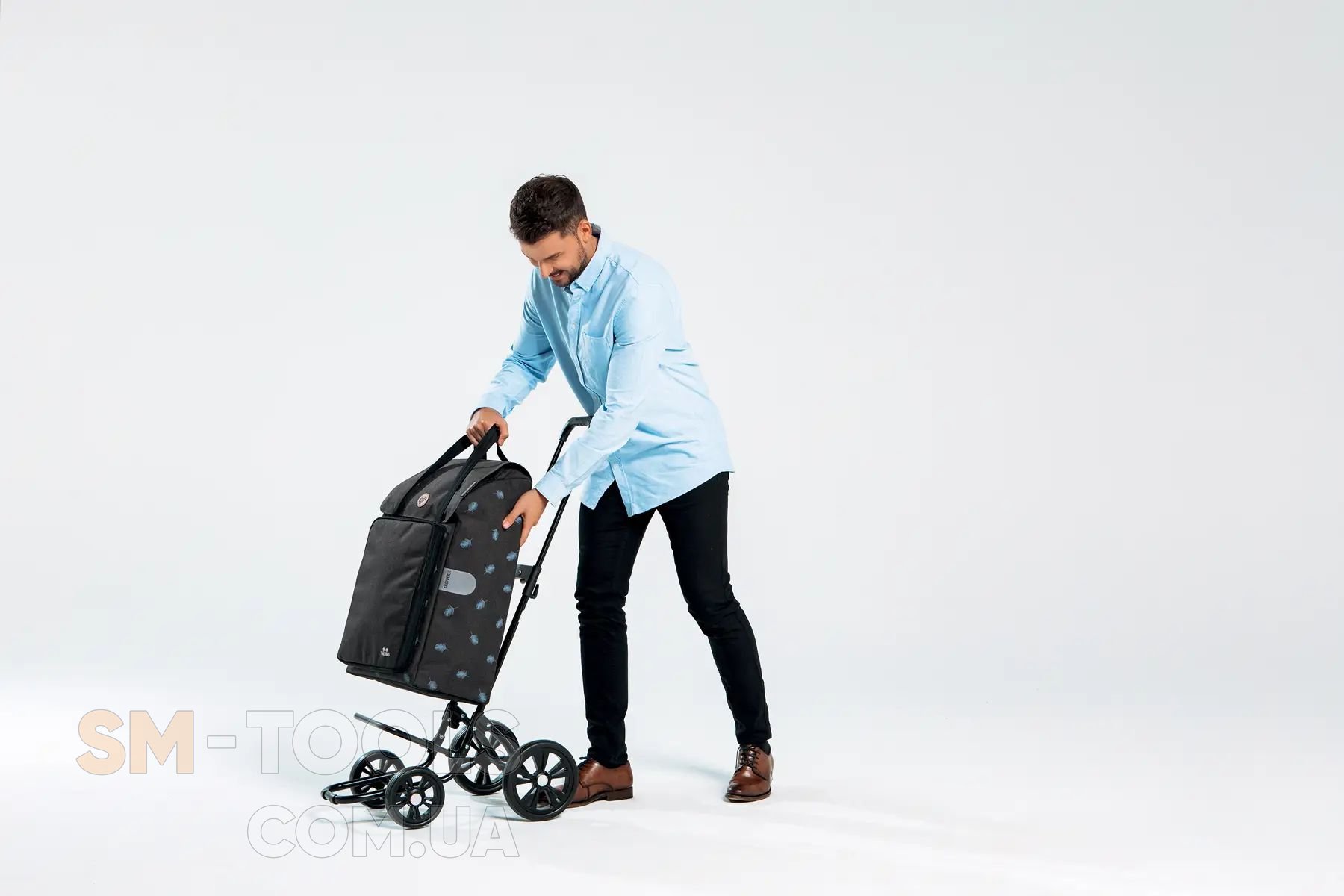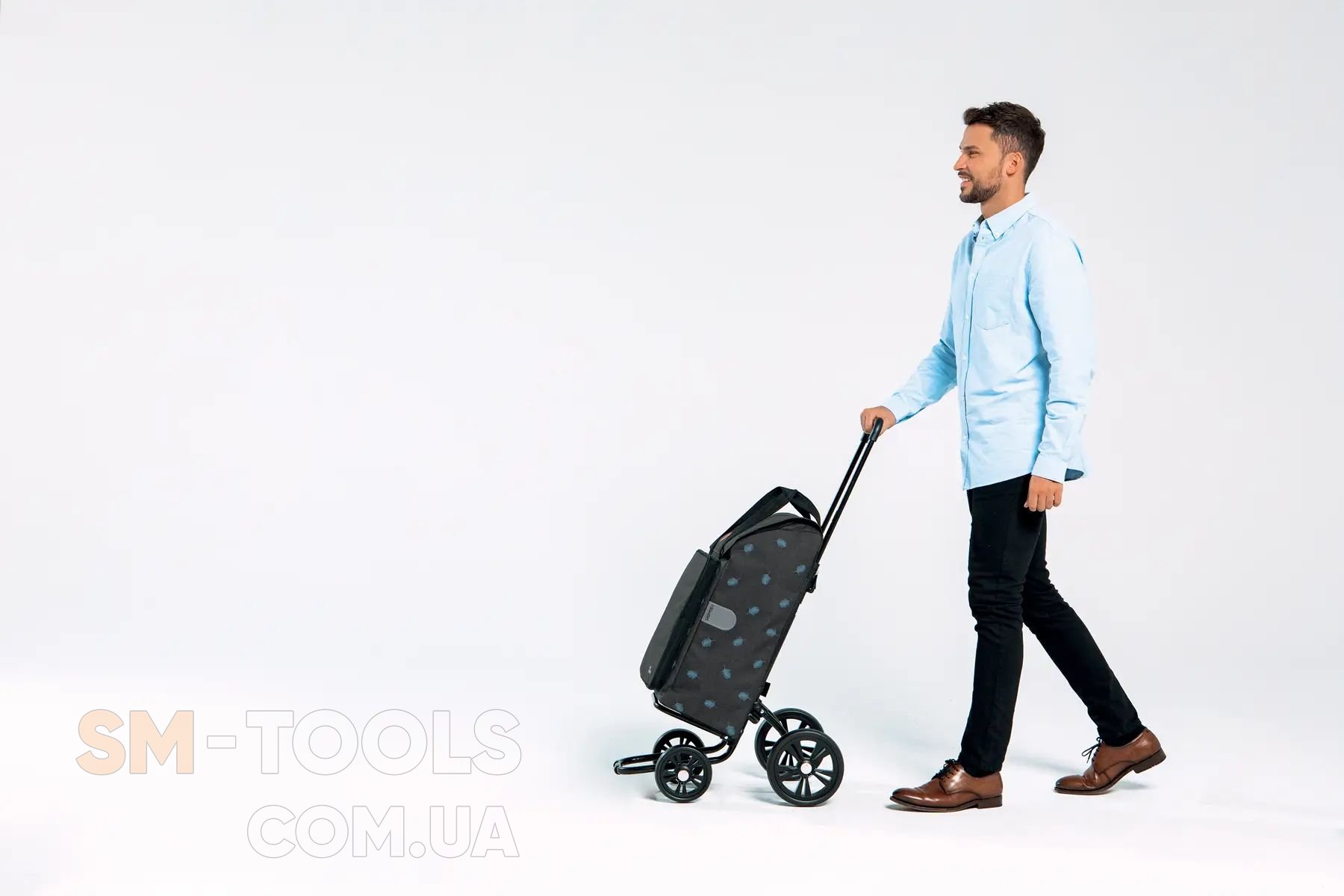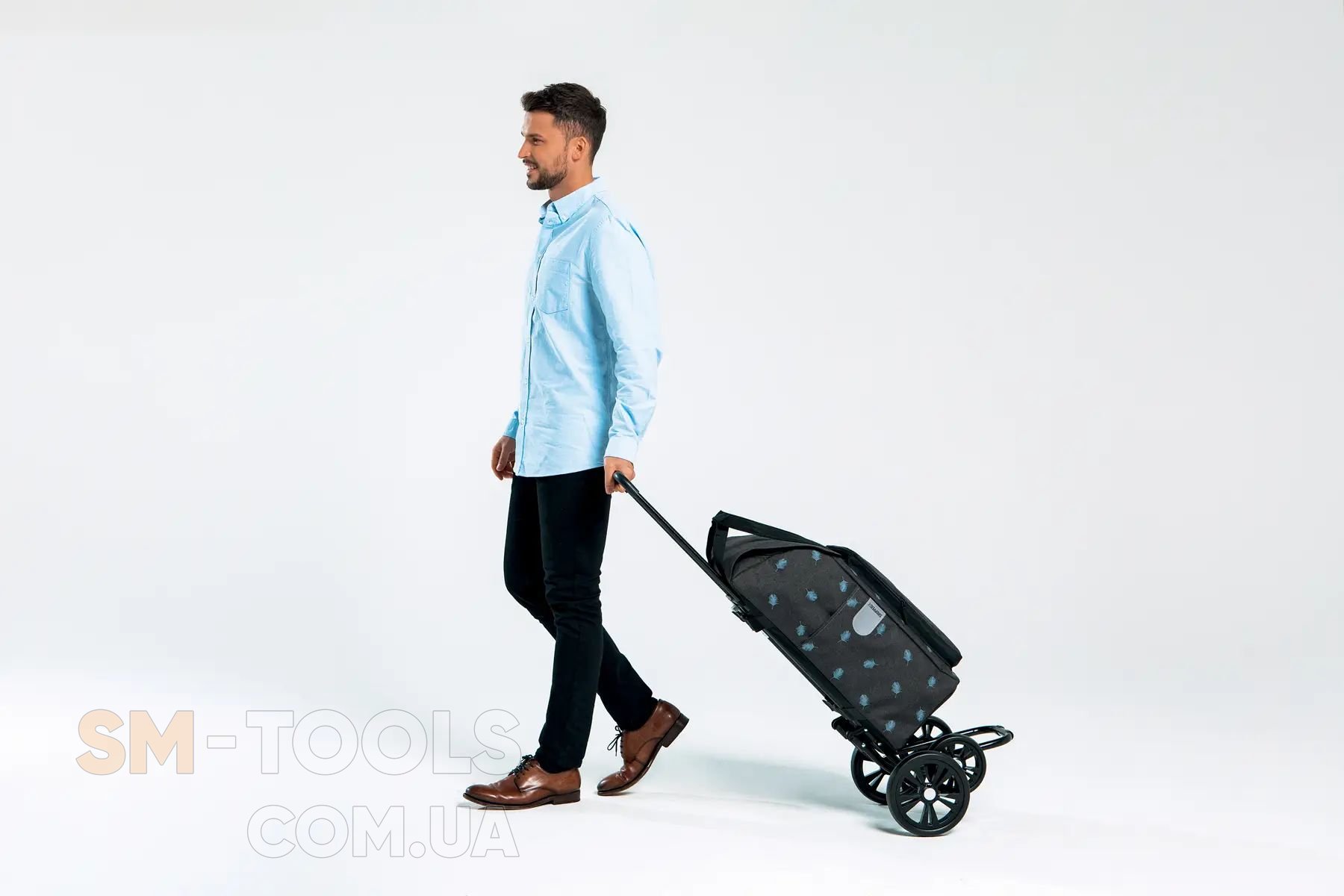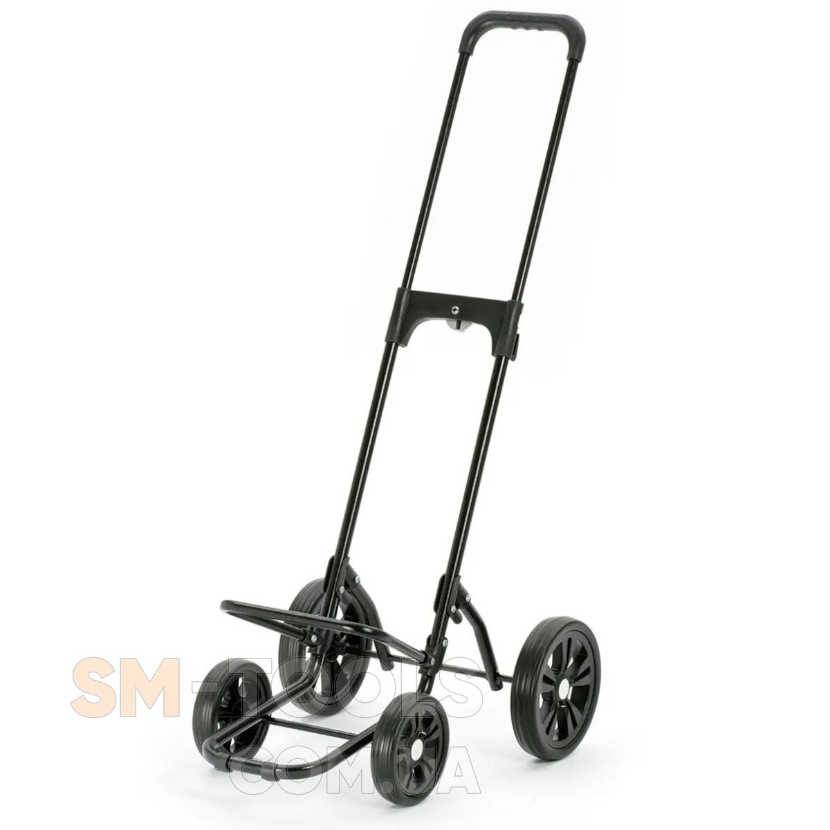 - Высота конструкции в разложенном состоянии - 117 см. Тележка оснащена телескопической ручкой, что позволяет регулировать и фиксировать высоту.