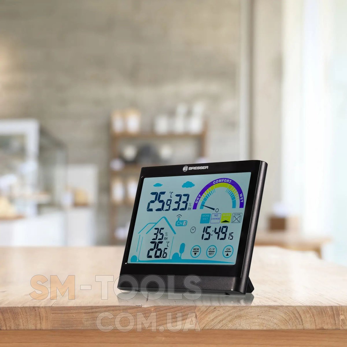 Термометр-гигрометр Bresser VentAir (Black) (7007402) способен анализировать показатели температуры и влажности воздуха внутри и снаружи помещения и на основе полученных результатов сигнализировать о необходимости проветривания помещения для достижения оптимального уровня комфорта внутри дома или офиса. Модель оснащена цветным сенсорным дисплеем с яркой подсветкой дисплея. Современный лаконичный дизайн и широчайший спектр функций позволит с равным успехом использовать термометр-гигрометр как в квартире, офисе так и в частном доме.