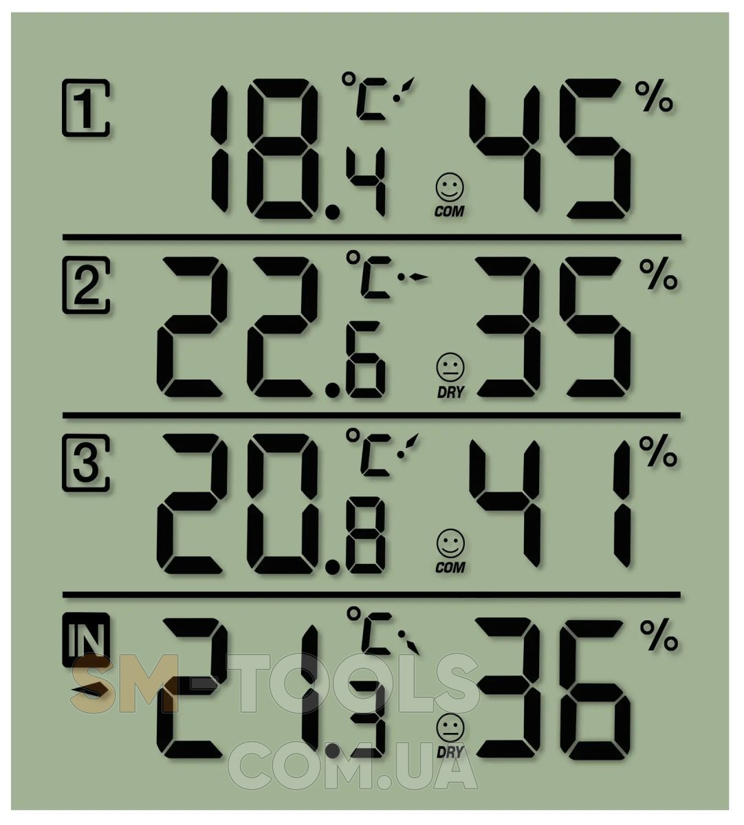 - Возможность подключения до 3-х внешних датчиков температуры и влажности (поставляются в комплекте)