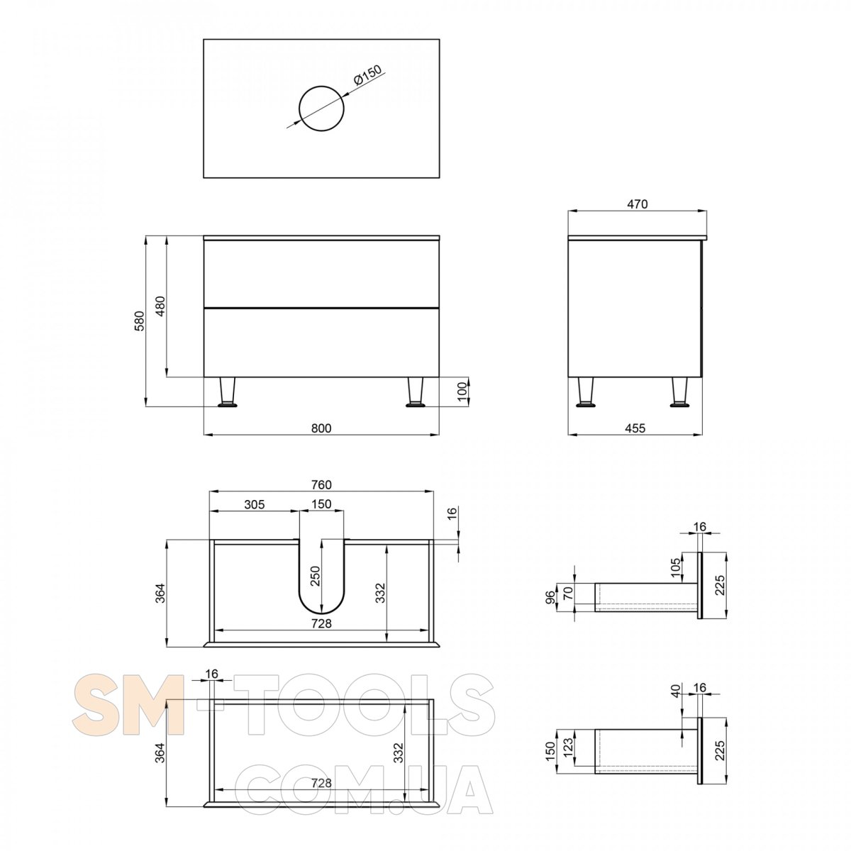Комплектация Тумба напольная Qtap Tern Matt black со столешницей QT1780TNL802MB: