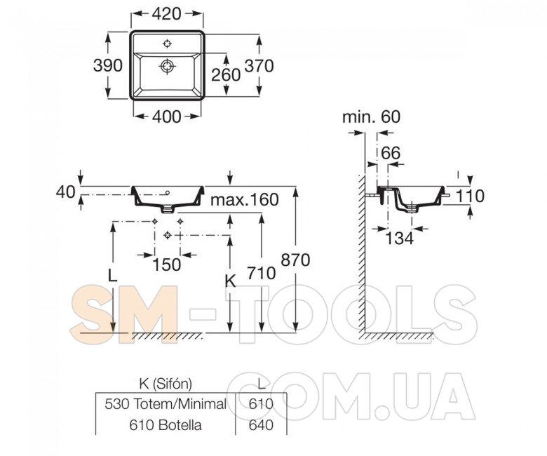 Размер раковины 420х390 мм