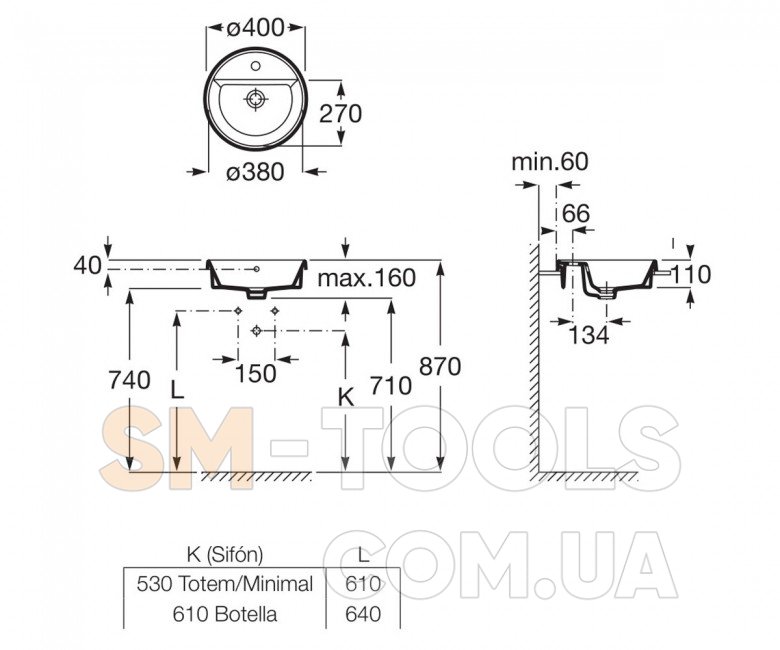 Размер раковины Ø 400 мм