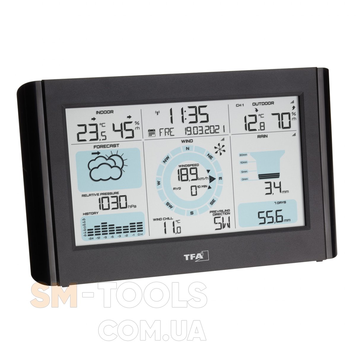- Внешняя температура и влажность, скорость ветра, направление ветра и количество дождя с помощью трех беспроводных наружных передатчиков (433 МГц) с диапазонами до 100 м (свободное поле)