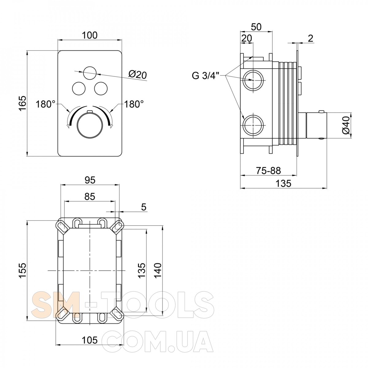 Характеристики Смеситель скрытого монтажа Qtap Votice 6443T105NKB на три потребителя: