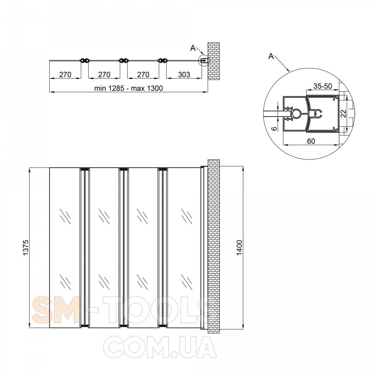 Характеристики Штора на ванну Qtap Gemini WHI401314RP6 стекло Pear 6 мм, 130x140 см: