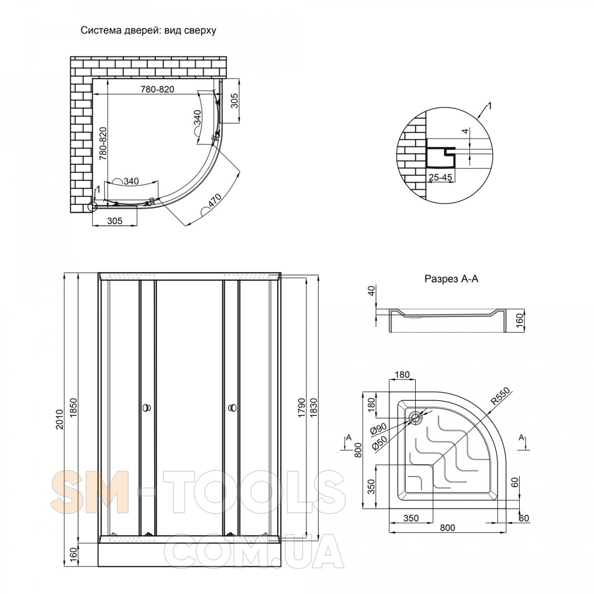 Модель душевая кабина: sc80x80.sat.low.gr. поддон: st80x80x16.